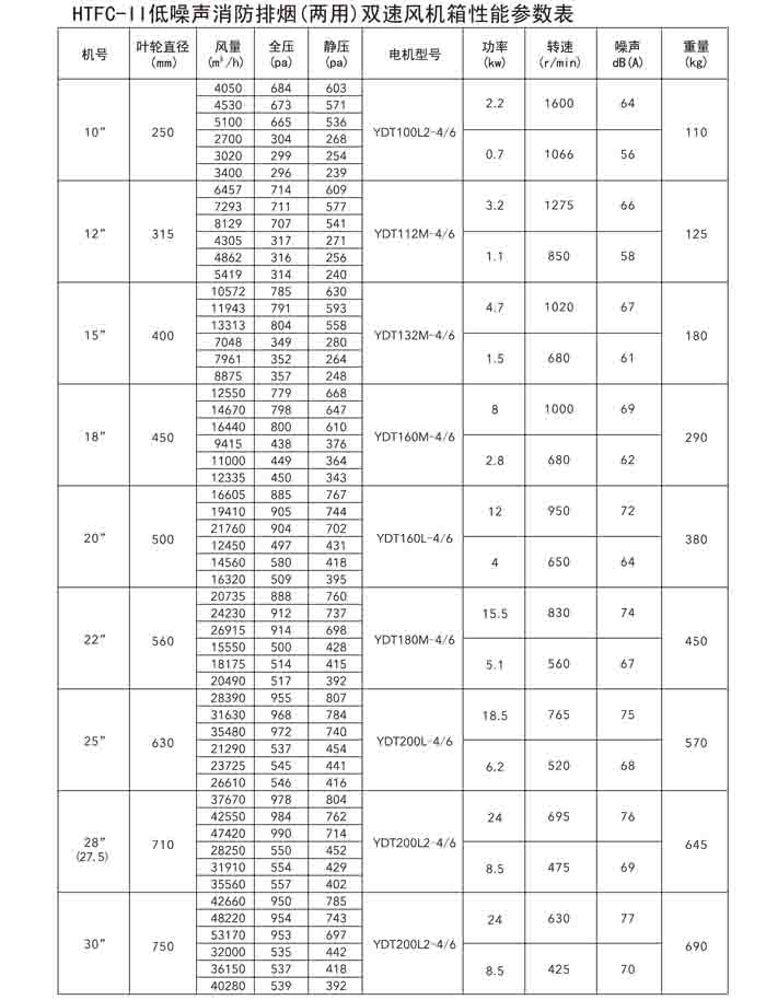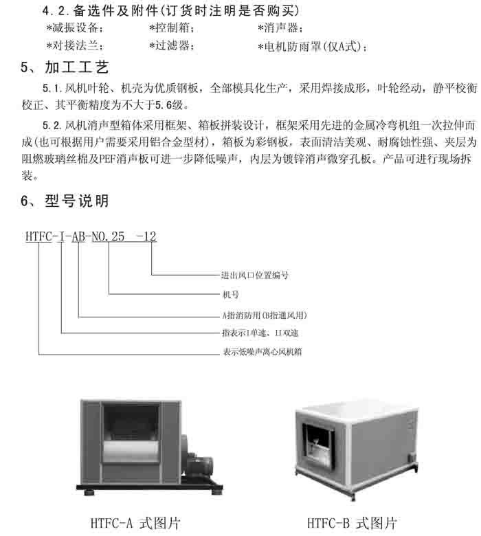 一、HTFC(DT)-I、II、V 系列低噪聲消防排煙(兩用)風(fēng)機(jī)箱