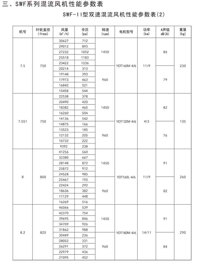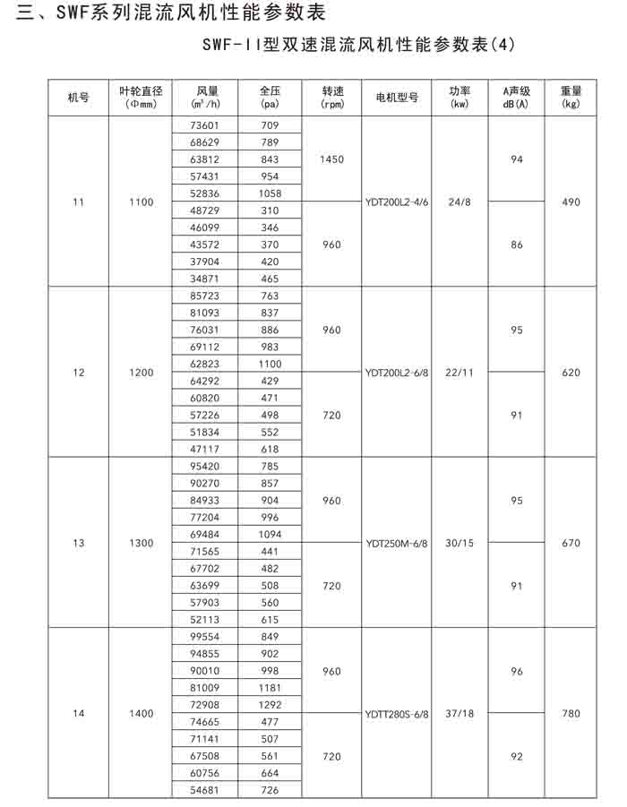 三、SWF-IV(HL3-2A)、HTF-PY(PYHL-14A)系列節(jié)能混流風(fēng)機(jī)