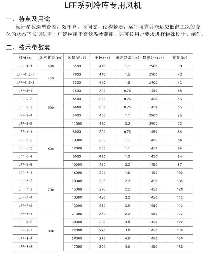 一、風機選用參考、安裝維護使用說明、常見故障分析、訂貨注意事項