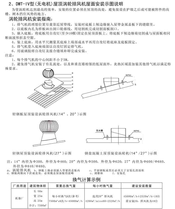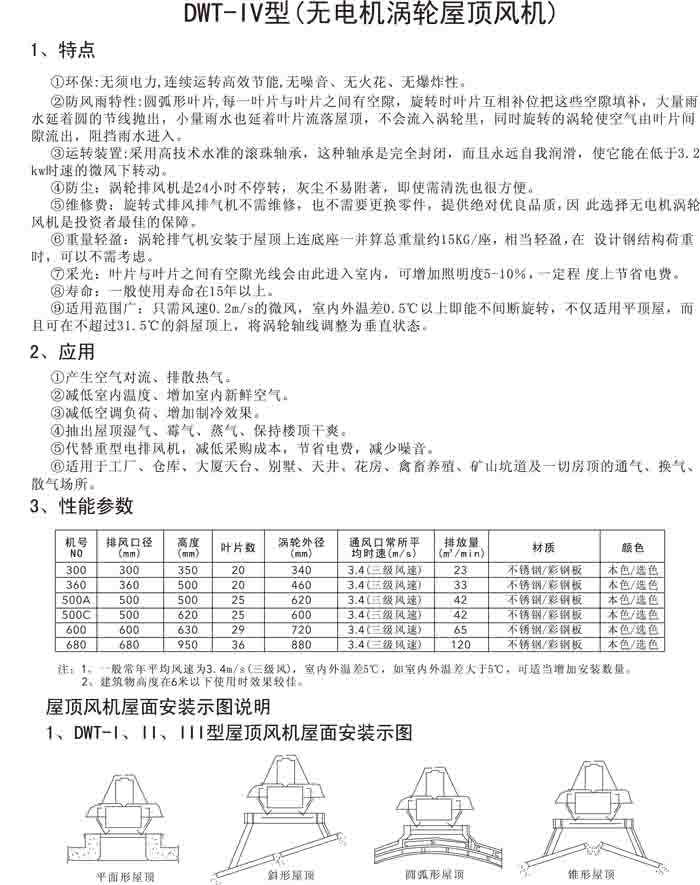 三、DWT-IV 系列無電機(jī)渦輪屋頂排風(fēng)機(jī)