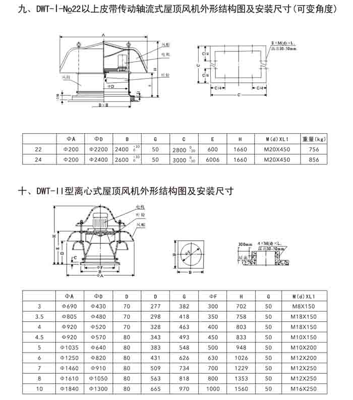 二、DWT-II、III 系列離心式屋頂風(fēng)機(jī)