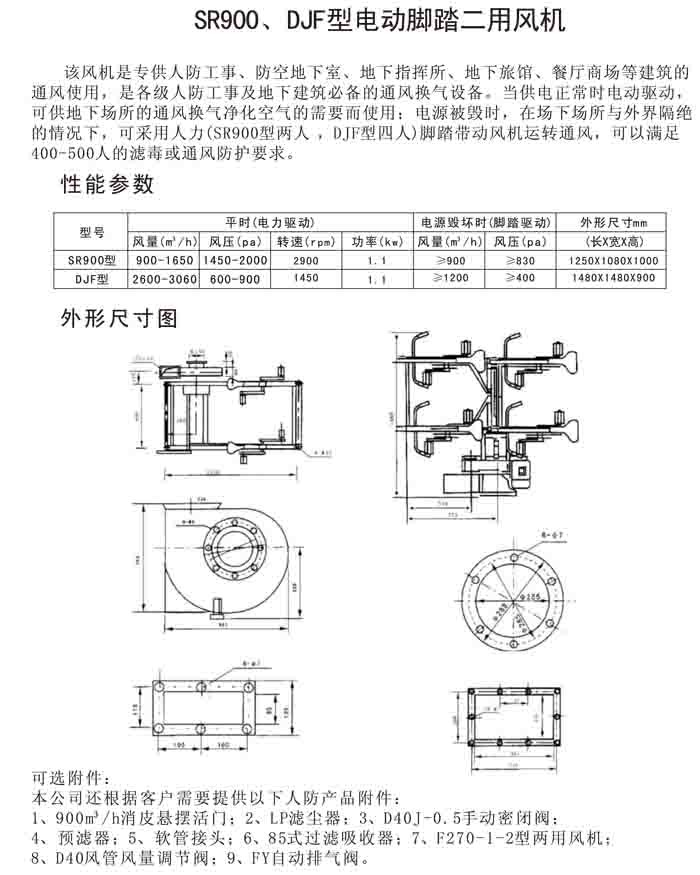 一、DJF-1、SR900 系列電動(dòng)腳踏兩用風(fēng)機(jī)