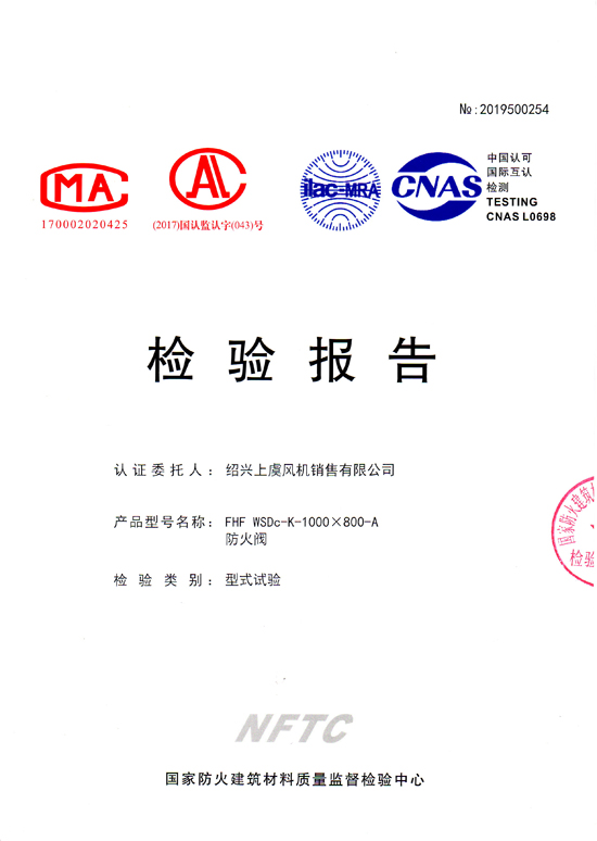 生產許可證檢驗報告低噪聲柜式風機箱 |